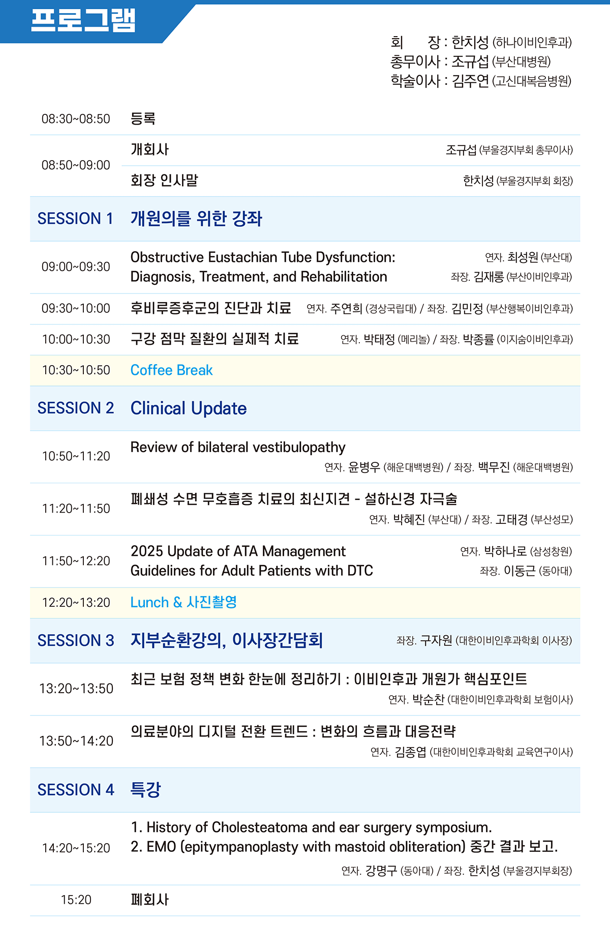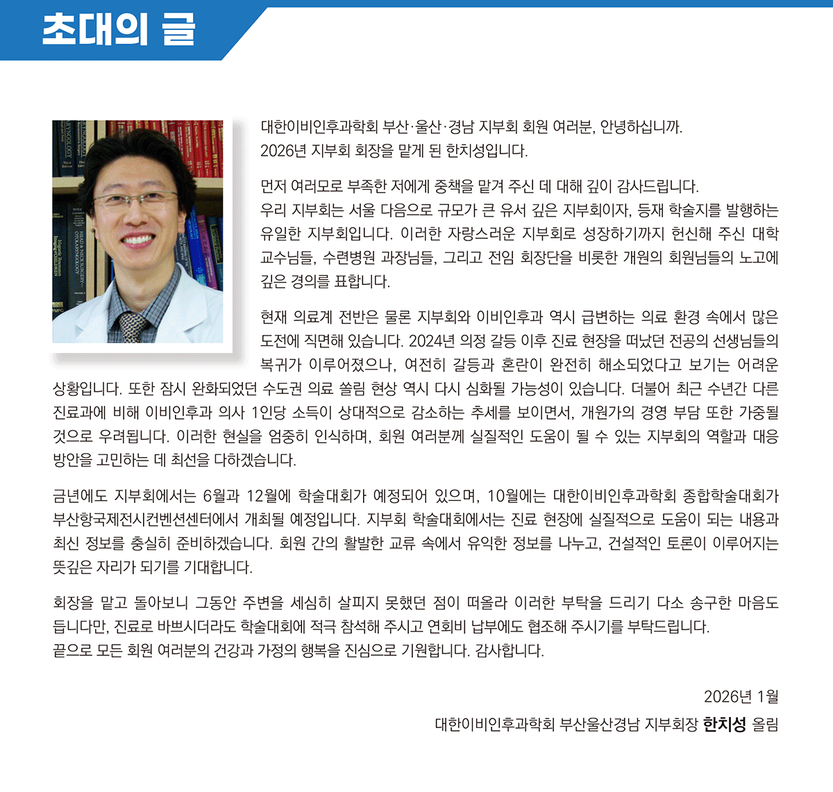 - 대한이비인후과학회 부산울산경남지부회 학술대회 지원팀